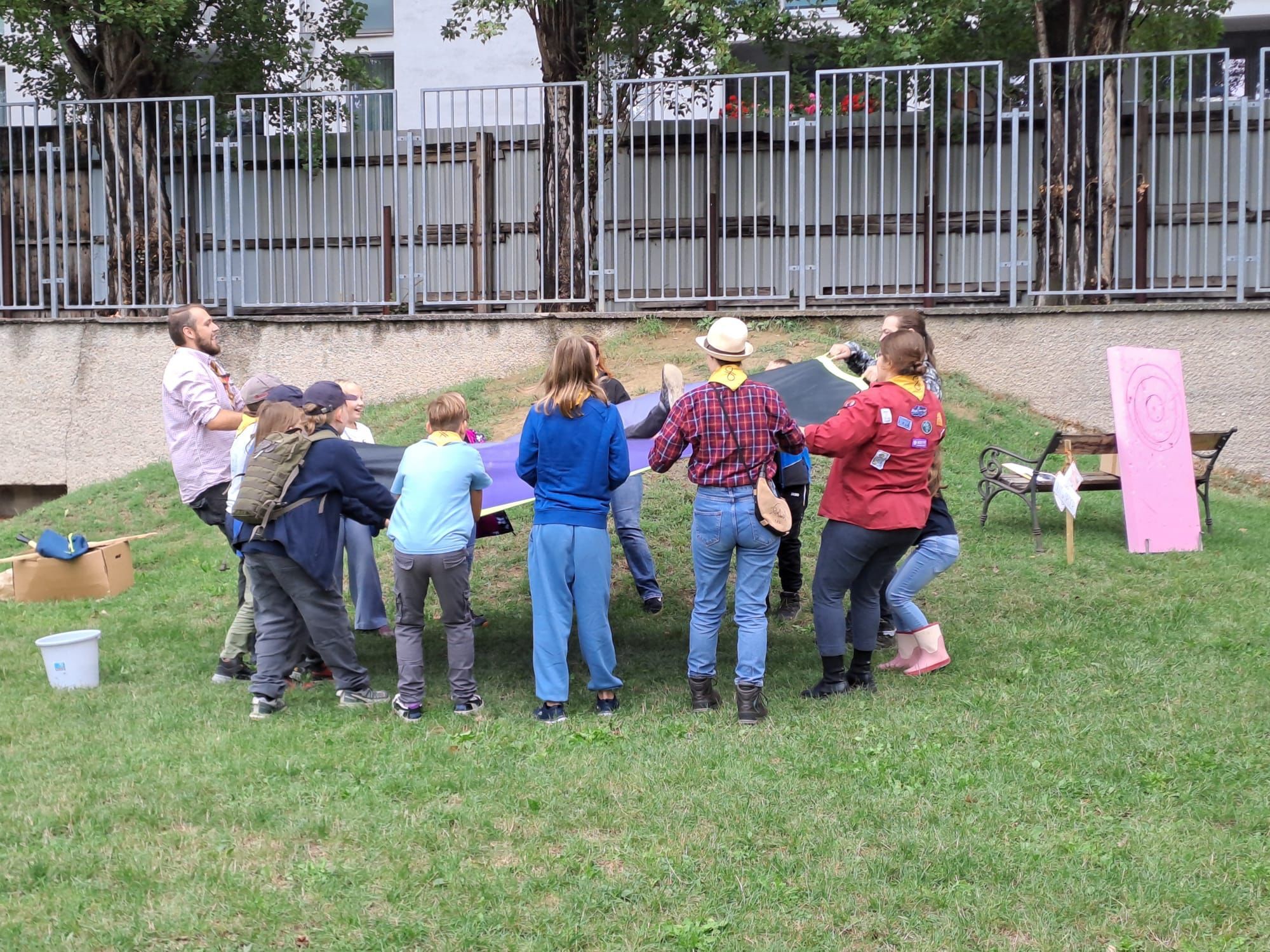 Wie es Tradition ist, wurden unsere Stufen feierlich überstellt: Die WiWö verabschiedeten sich von ihren zu alten Dschungel- und Waldenlandbewohnerinnen, neue GuSp schwebten auf einem „fliegenden Teppich“ in ihre Stufe, und die neuen CaEx bekamen gleich einen Vorgeschmack auf die Herausforderungen einer Hike.
